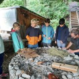 Zur Mittagsrast machten wir ein Feuer, wofür alle ein Holz Stück mitgetragen hatten. Wir hatten ausreichend Zeit, Würste zu braten, gemütlich zu essen und zu spielen.